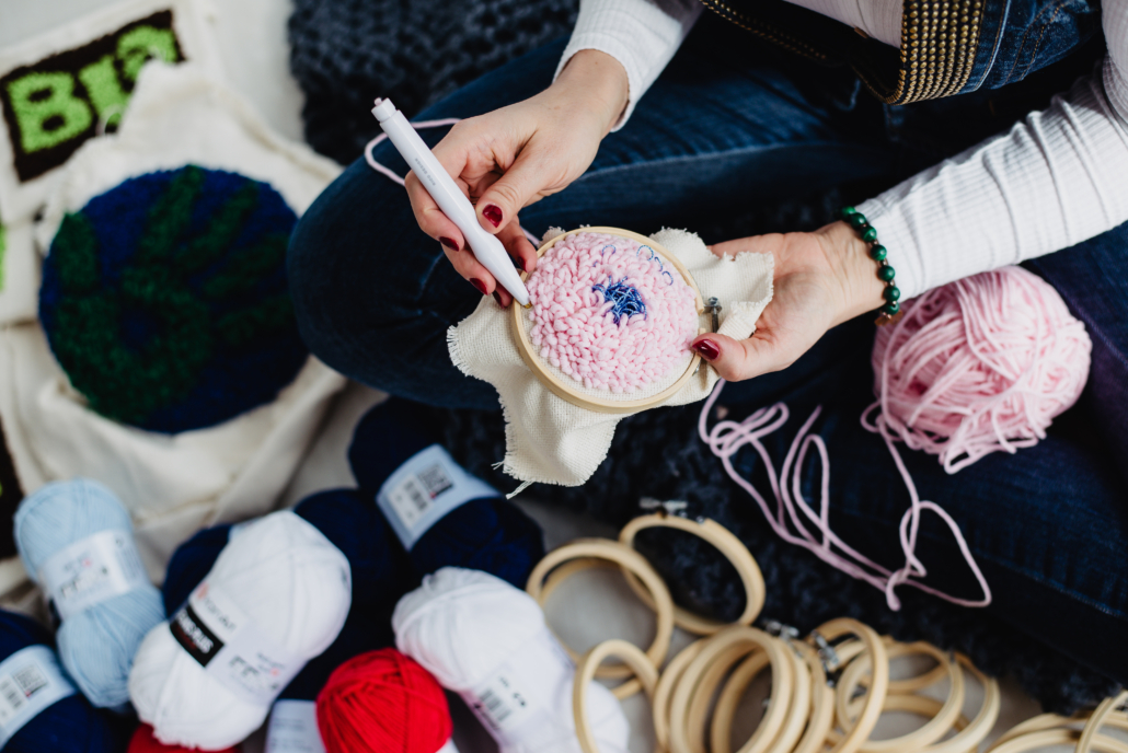Pokażę, jak użyć igły do punch needle, odpowiedniej włóczki i specjalnego materiału rozpiętego na tamborku. Wykonamy prostą pracę, porozmawiamy o tym, jak pogłębiać znajomość tej techniki i wymienimy się poradami dotyczącymi włóczki.