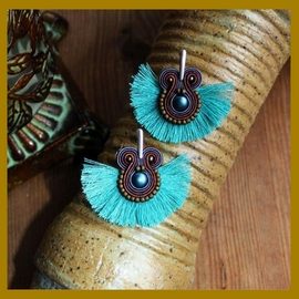 Pamiętam to wrażenie przy pierwszym zetknięciu się ze sznurkami… gładkie, ciepłe, posłusznie układały się w dłoni. A kaboszony… na początku tylko niebieskie, bo to mój ulubiony kolor. Oczami wyobraźni widziałam, jak sznurki wiją się radośnie wokół koralików, układają się w kolorową, harmonijnie dobraną całość. Wiedziałam, że potrafię z nich wyczarować wszystko, co mi w duszy gra… Dopiero po pewnym czasie do niebieskich kaboszonów dołączyły kolory, następnie chwosty, pompony, muszelki…