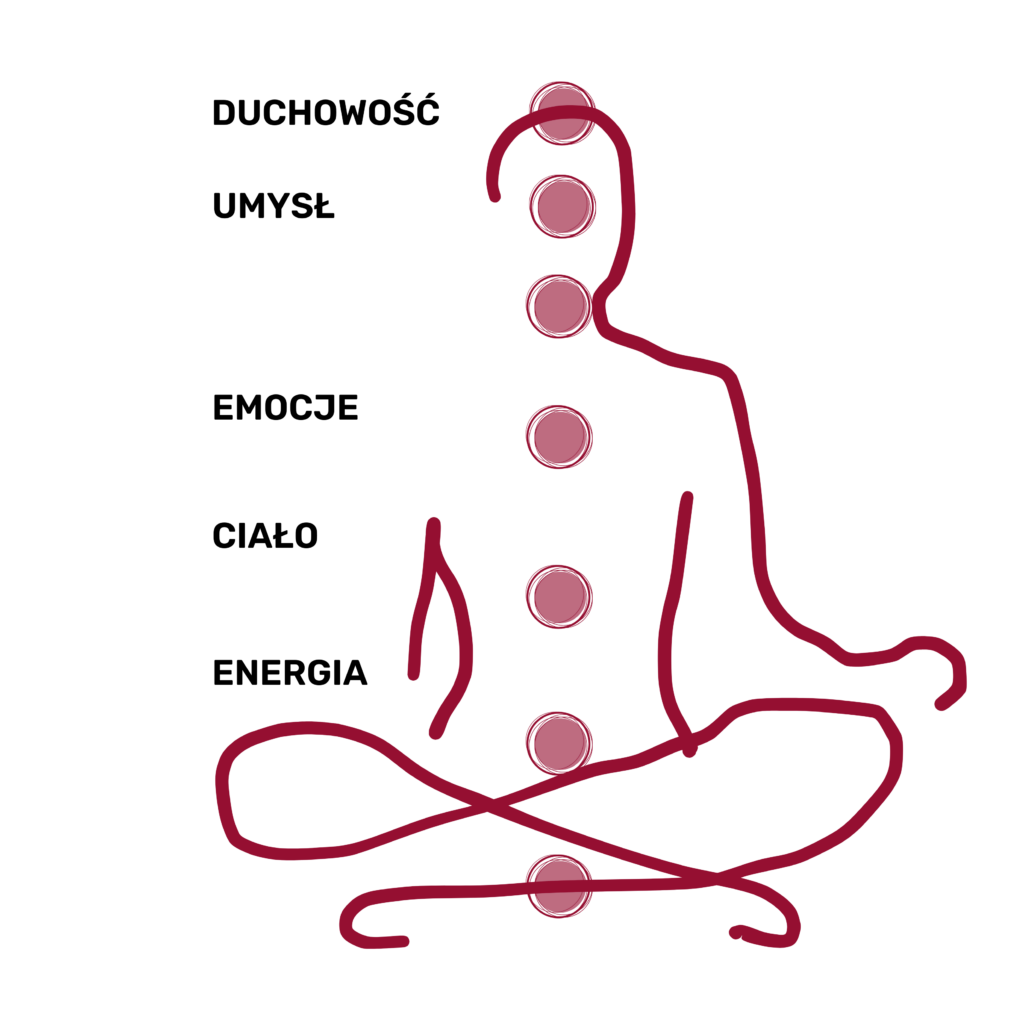 Grafika: 5 aspektów (sfer) bytu (człowieka)