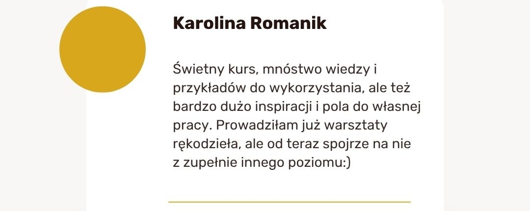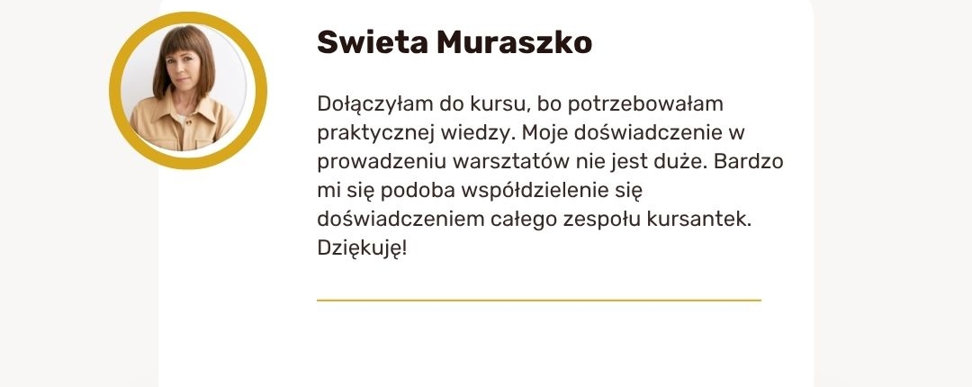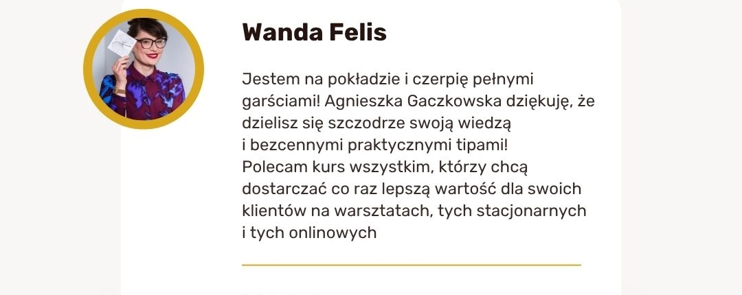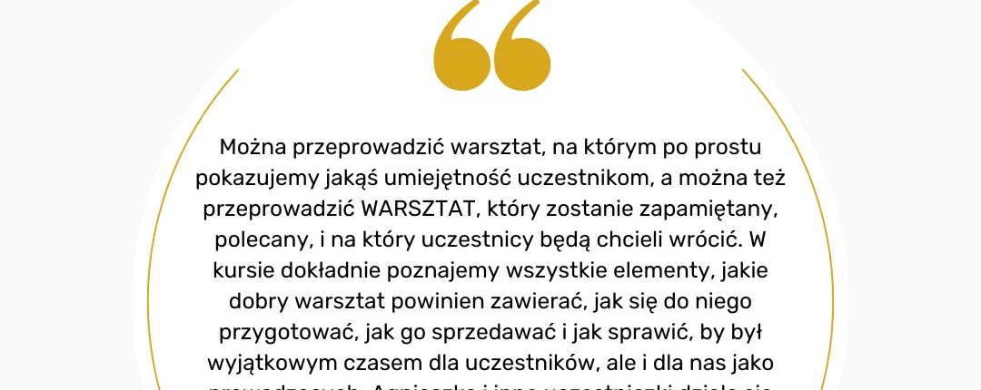 Dla twórczyń handmade, które chcą zamienić talent w dobrze poprowadzone, prawidłowo wycenione i naprawdę wartościowe warsztaty.